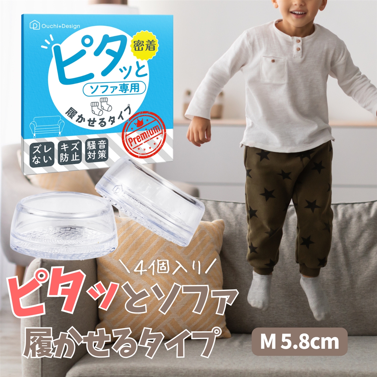 | 商品名 | 履かせる タイプ ピタッと ソファ 滑り止め 《Mサイズ 5.8cm》 |