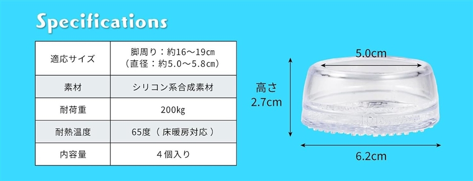 「商品詳細」内容量:4枚入 対応サイズ:足周り約16〜19cm(直径5.0〜5.8cm)。