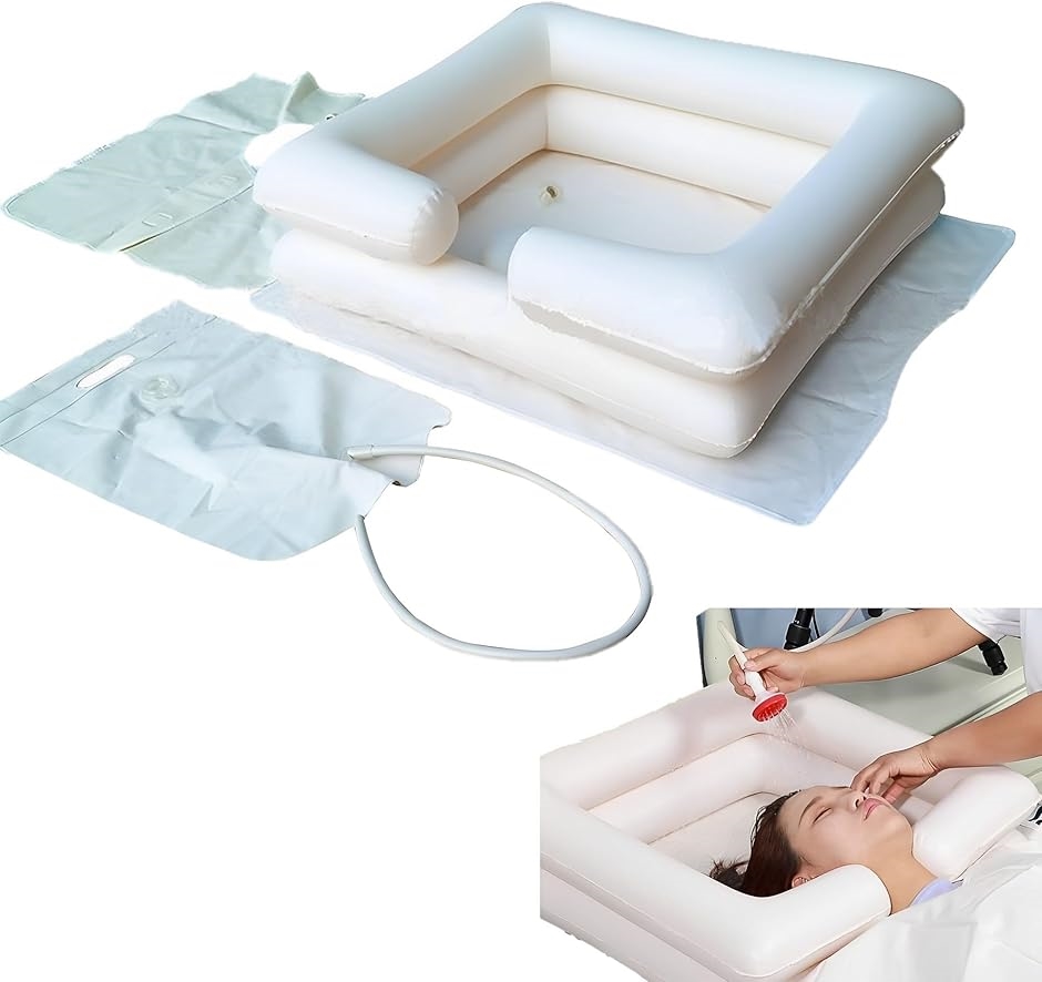 いつもお使いのベッドが洗髪台に柔らかく、軽い素材なので使いやすいいつもの場所に簡単設置・ベッド・布団・ソファー などに高齢者だけでなく、入浴できない方や妊婦さんにも便利「簡易洗髪槽」空気を抜いてコンパクトに折りたためるので、収納の場所も取らず、持ち運びに便利枕つきなので頭と肩を優しく、しっかりとサポート寝たまま簡単に洗髪できるので、高齢者だけでなく、入浴できない方や妊婦さんにも便利です排水穴、排水チューブ 付で、洗髪後の排水も簡単