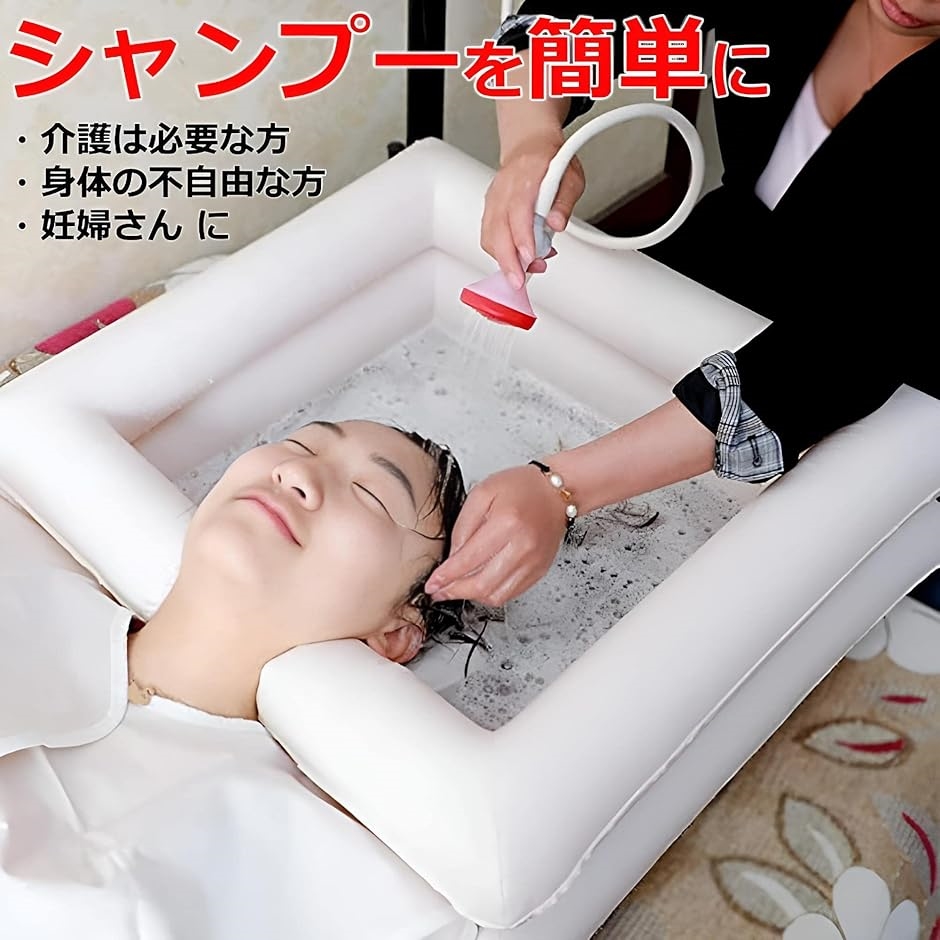 | 商品名 | シャワー付き 寝たまま洗髪 洗髪器 セット 高齢者 妊婦 洗髪槽 シャンプー 台 空気式 エアー 枕 防災 簡易シャワー |