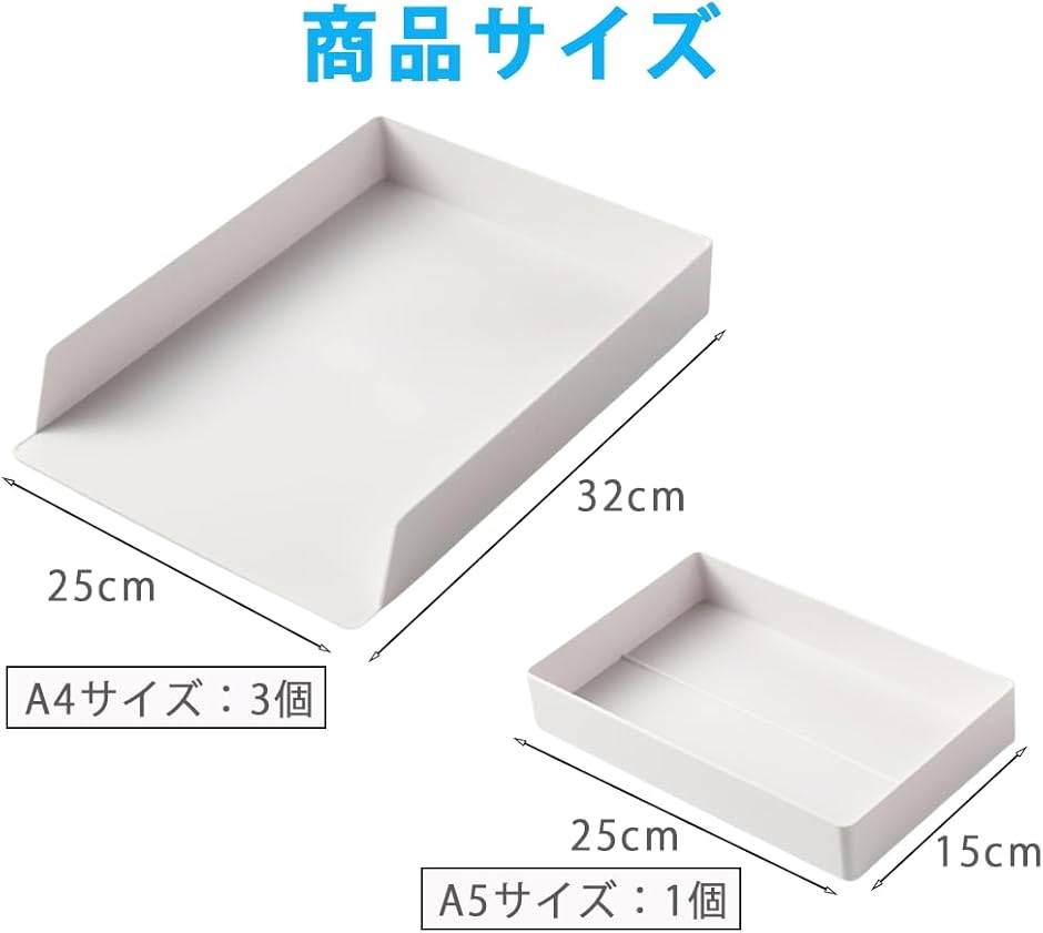 「セット内容」A4サイズトレー3個、A5サイズ小物入れ1個、素材:PP