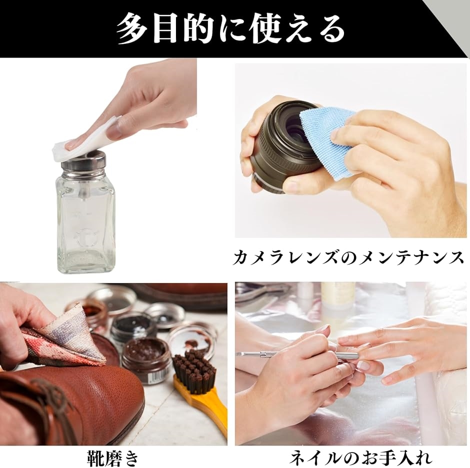 手消毒だけでなく、ネイルやコスメのお手入れ、靴磨きなどにも使えます。