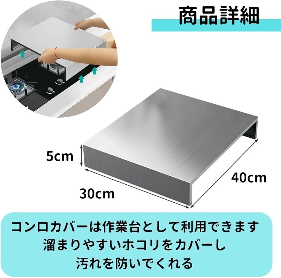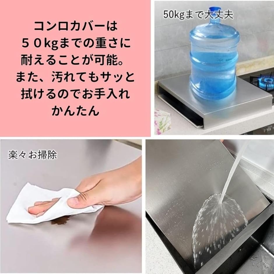 「サイズ」(2種類からお選びください)40x30x7cm、40x30x5cmコンロカバーは約50kg以内の重さに耐えれます。
