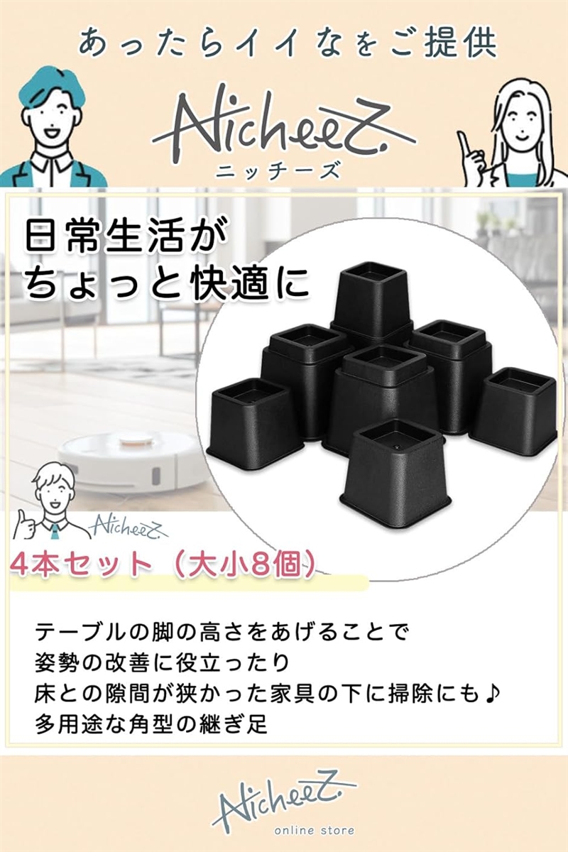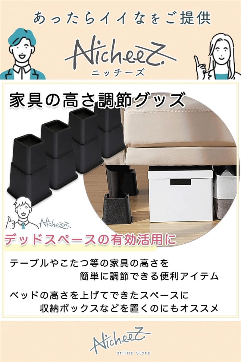 「家具の高さ調節グッズ」テーブルやこたつ等の家具の高さを簡単に調節できる便利アイテムです。
