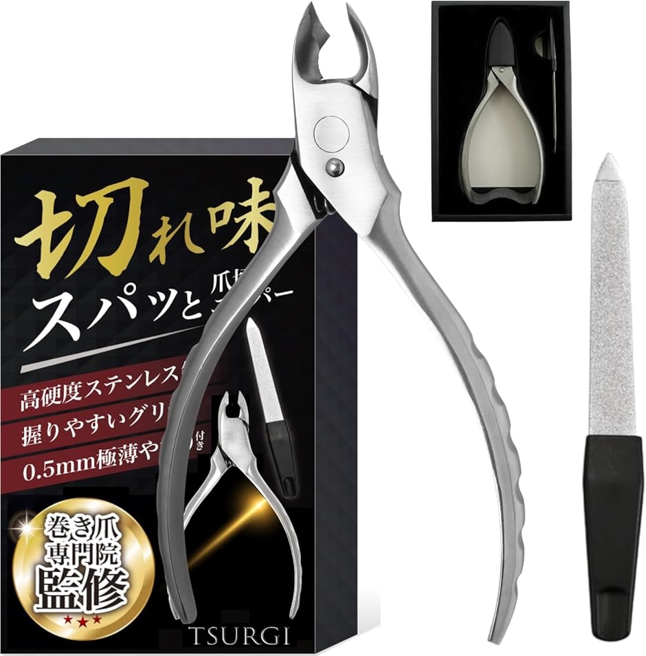 | 商品名 | TSURGI 爪切り ニッパー 巻き爪 専門院監修 高硬度 ステンレス シルバー |肥厚爪・陥入爪・足用|セルフネイルケア| つめきり 匠の技巧 極薄爪やすり付 |