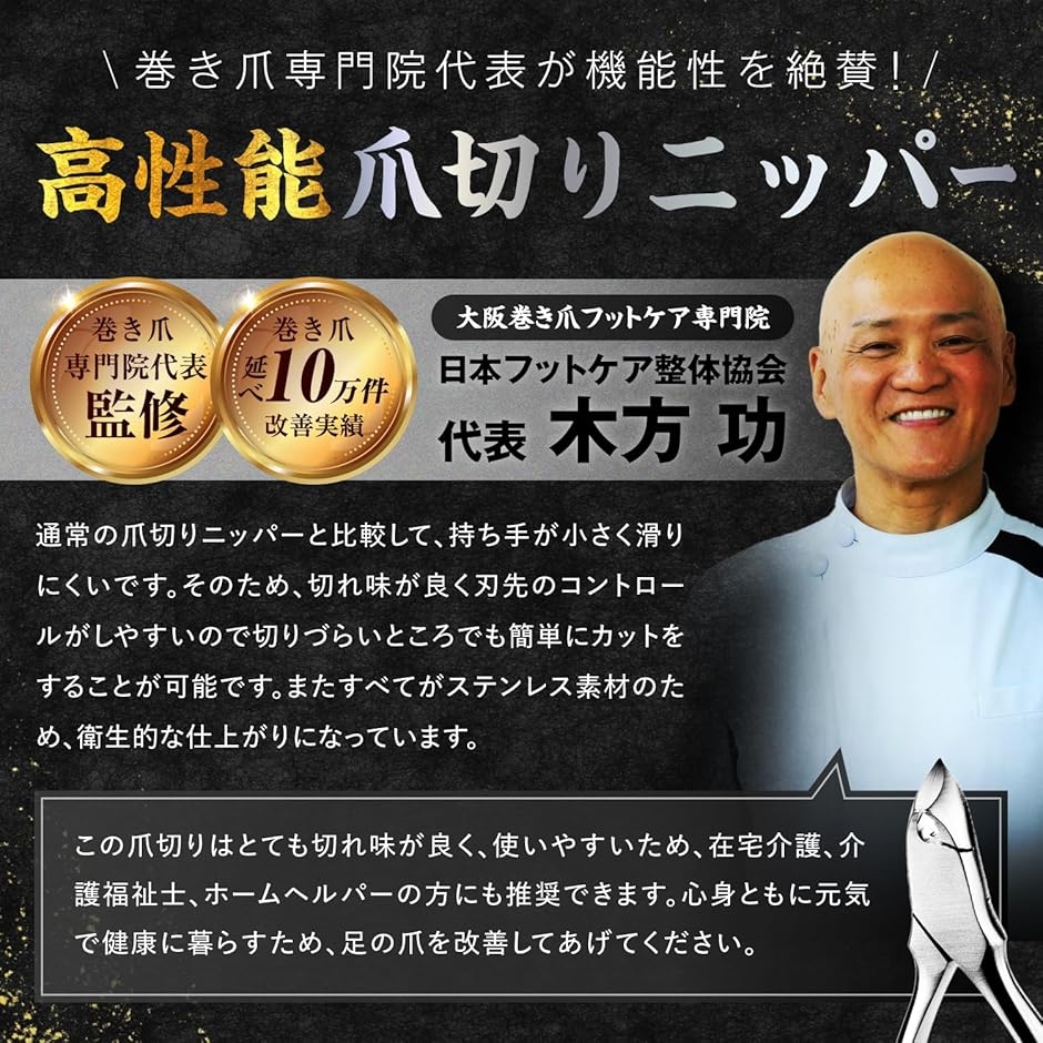 「巻き爪専門院監修|プロ仕様の爪切りニッパー」 巻き爪フットケア専門院院長監修のTSURGI爪切りニッパー。