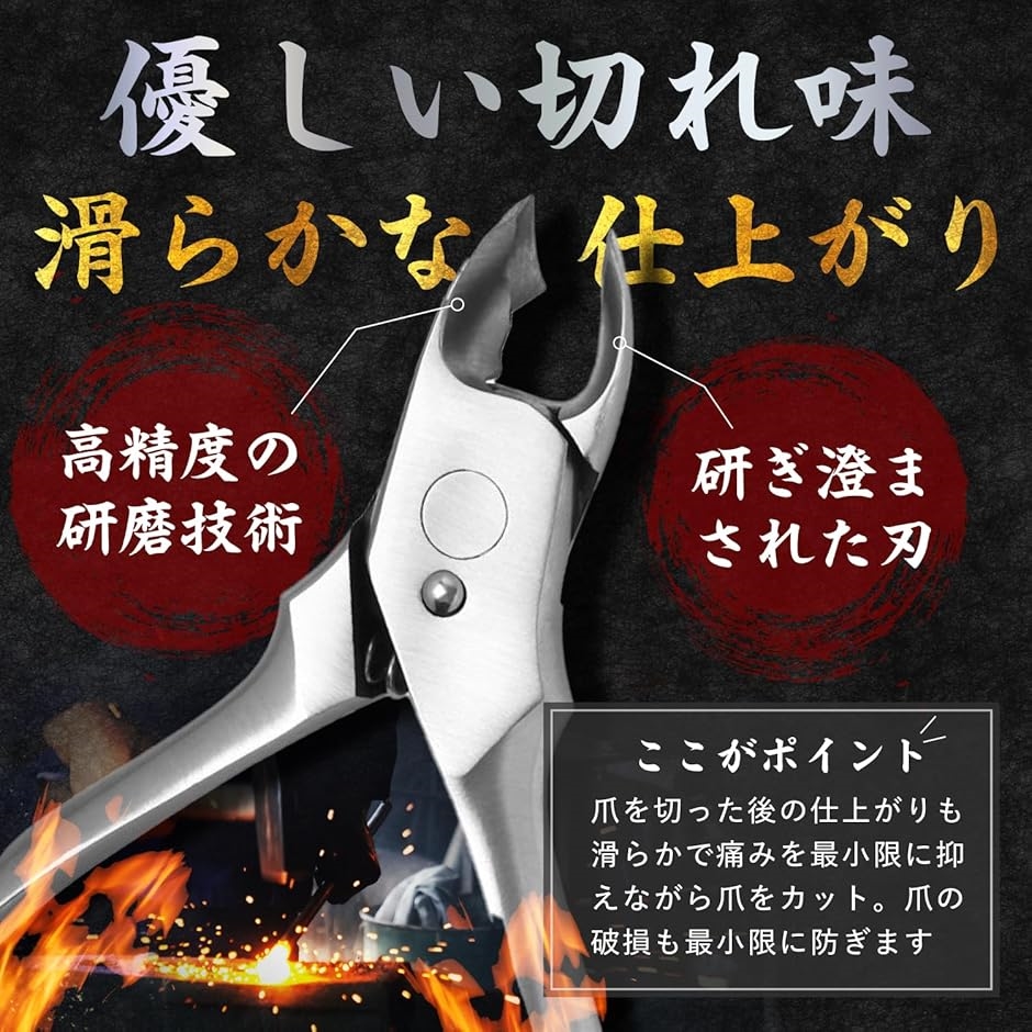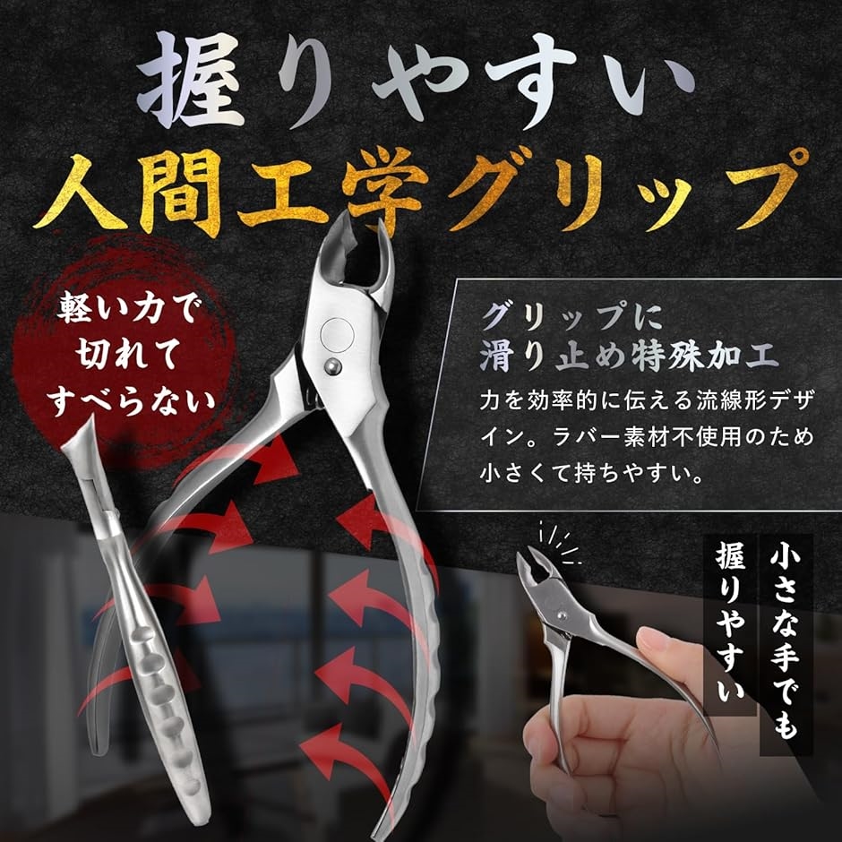 巻き爪・硬い爪・厚い爪に対応: テコの原理を活かした設計で少ない力で切れます