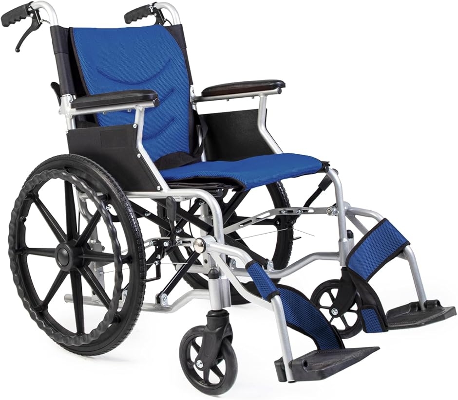 | 商品名 | 車椅子 自走式車いす 軽量車イス 折り畳み 軽量 コンパクト アルミ製 自走介助兼用 車椅子 手押し 軽い車椅子 背折れ 介助ブレーキ付 収納ポケット付き 自宅でも外出でも ブルー |