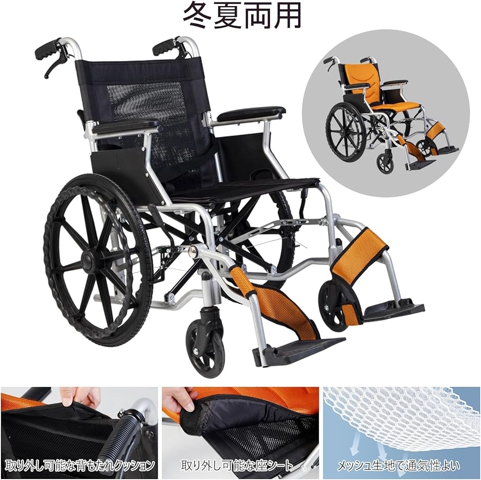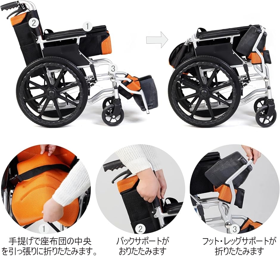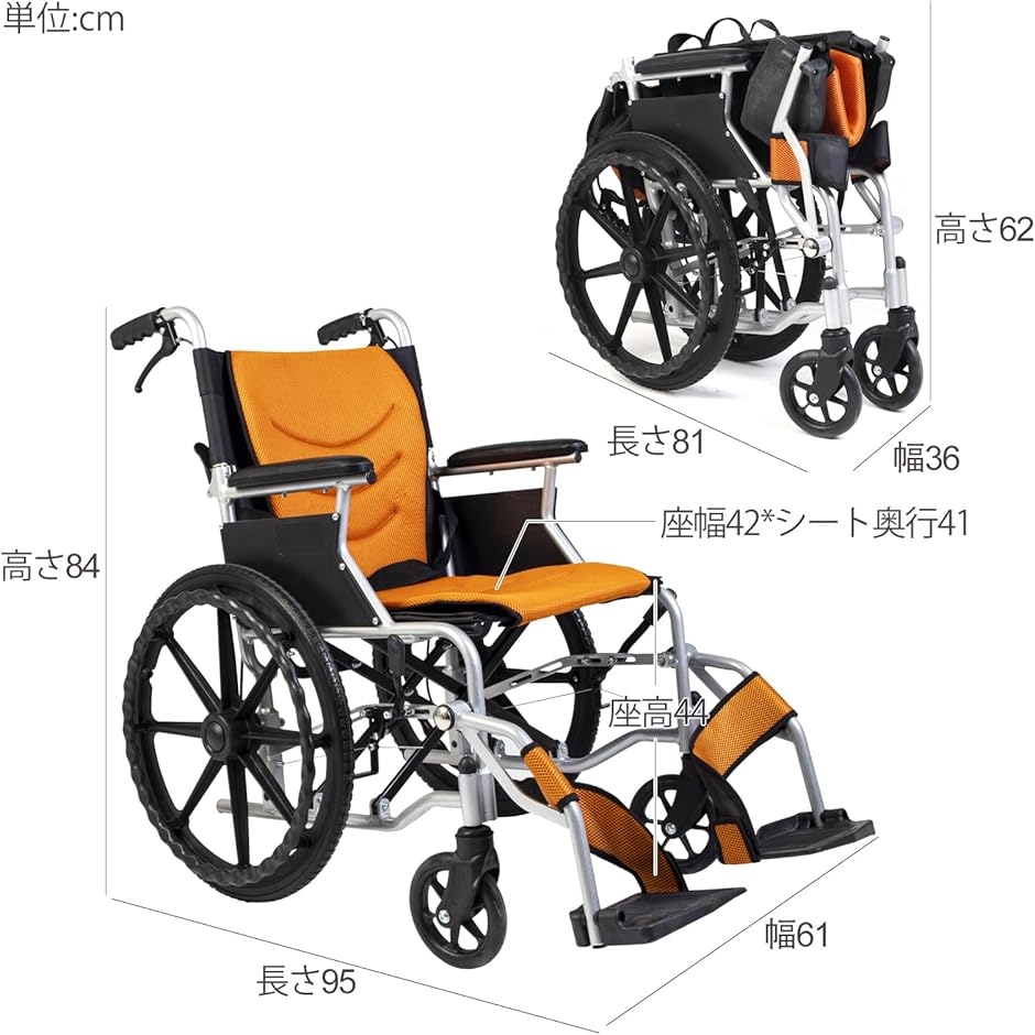 | 商品名 | 車椅子 折り畳み式 アルミ製 介助・自走 兼用 簡易 コンパクト 介助ブレーキ付 収納ポケット付き |