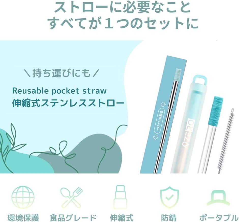 | 商品名 | ZERO ポケットストロー 伸縮式ステンレス製 ストローブラシ・ケース付き 携帯 折りたたみ SDGs サステナブル |