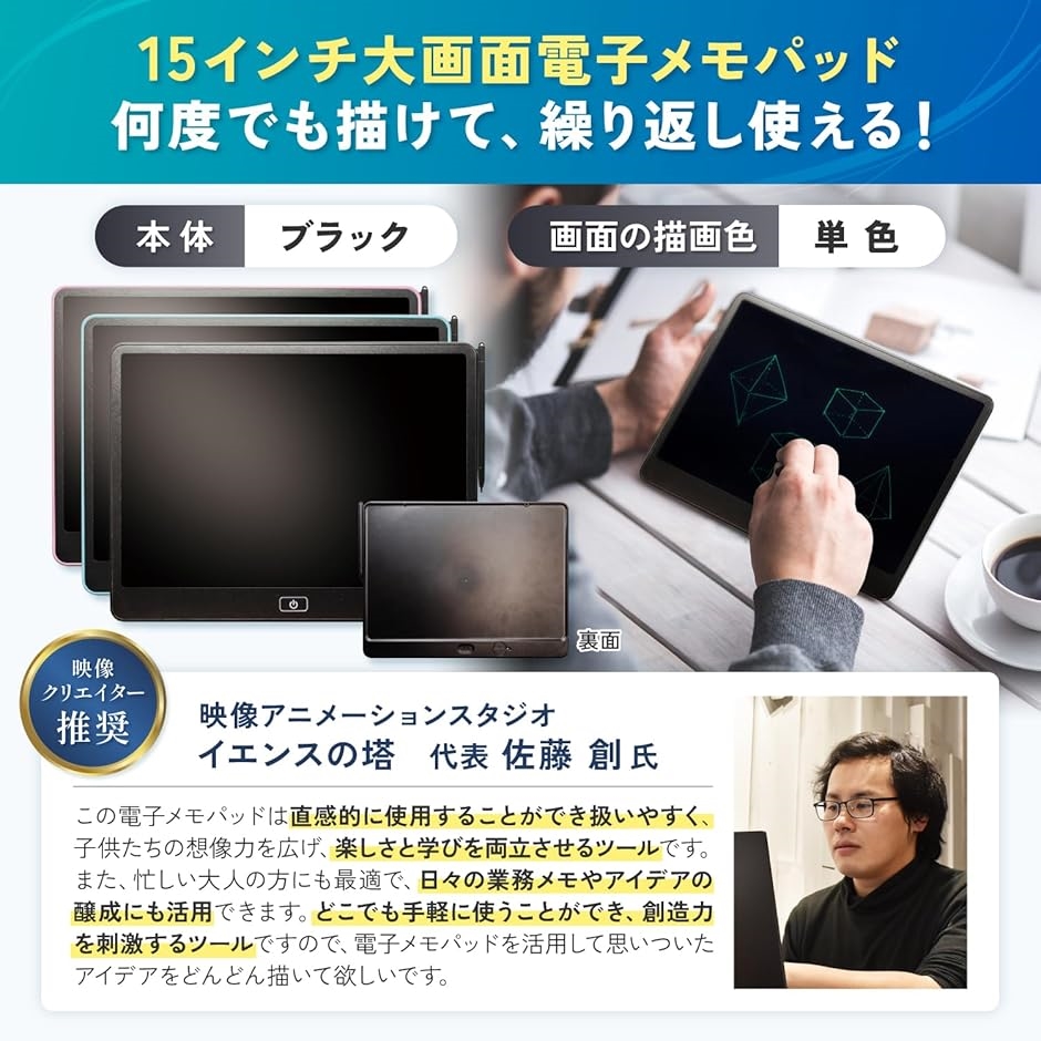 電子メモパッドは大人やお子さまに限らず、すべての方の創造性を刺激するツールです。
