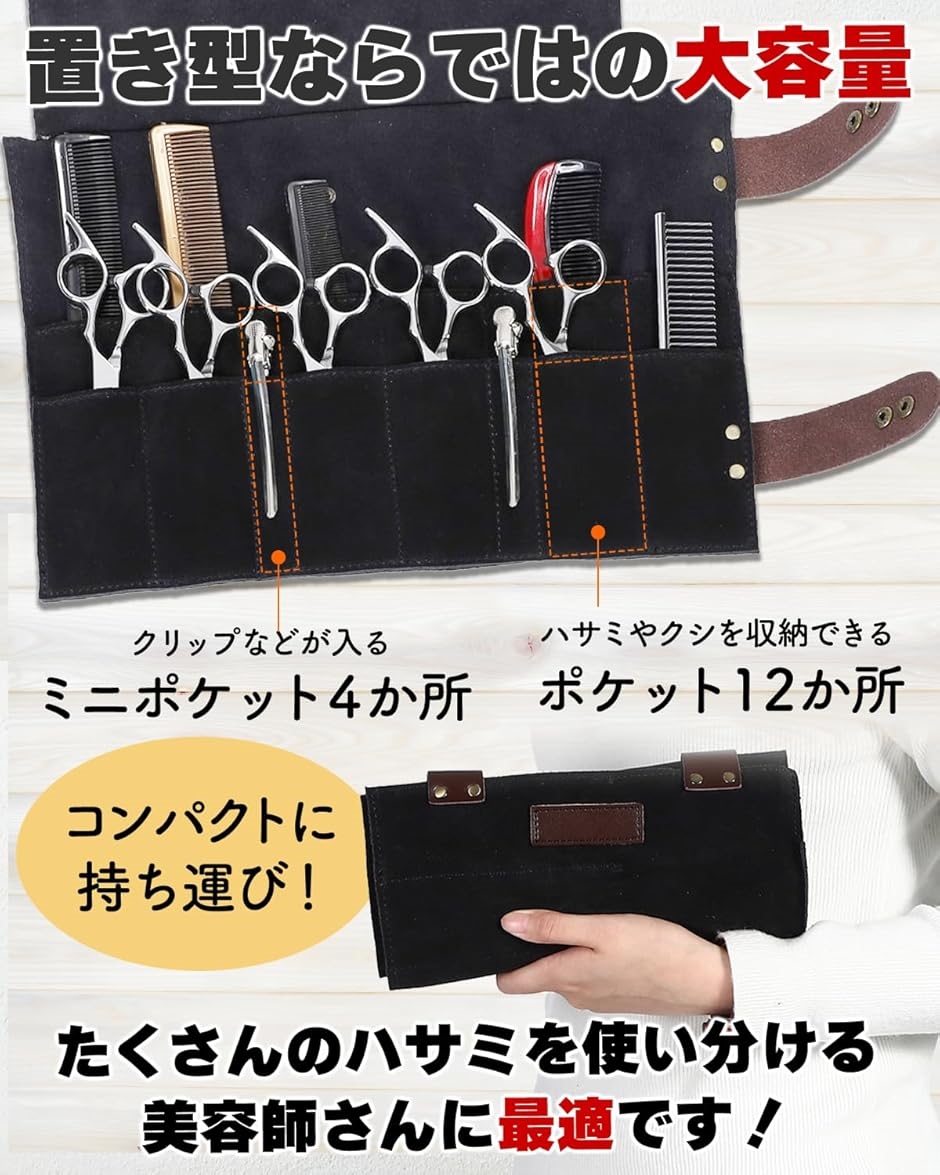 | 商品名 | シザーケース 美容師 トリマー シザーバッグ 折りたたみ 花屋 持ち運び 12丁 革 レザー ブラック |