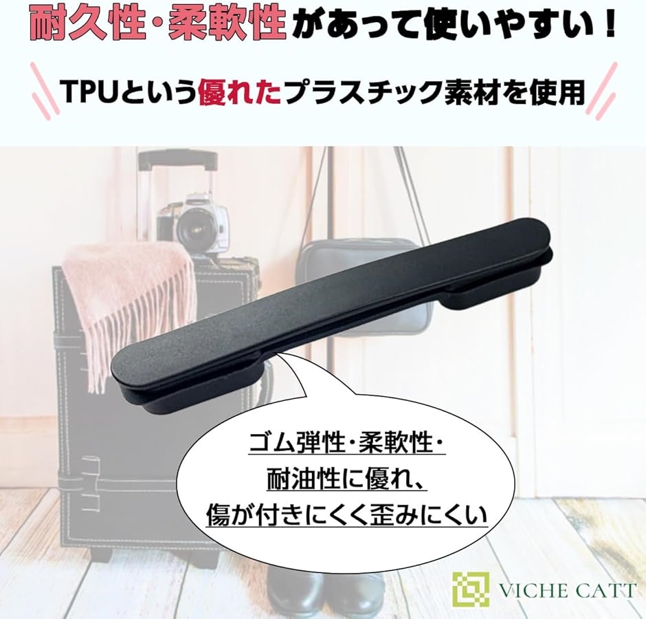 日常の摩擦や使用による摩耗にも強い素材でスーツケースのハンドルとして大変適しています。