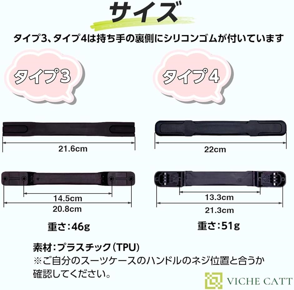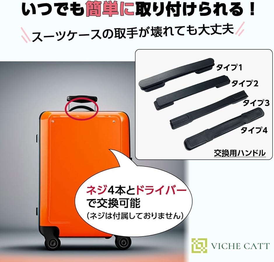いろいろなタイプのハンドルがありますが、ご自分のスーツケースのハンドルのネジ位置と合うかご購入前に確認して下さい。
