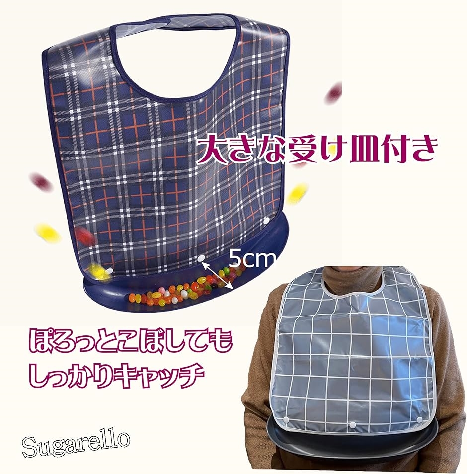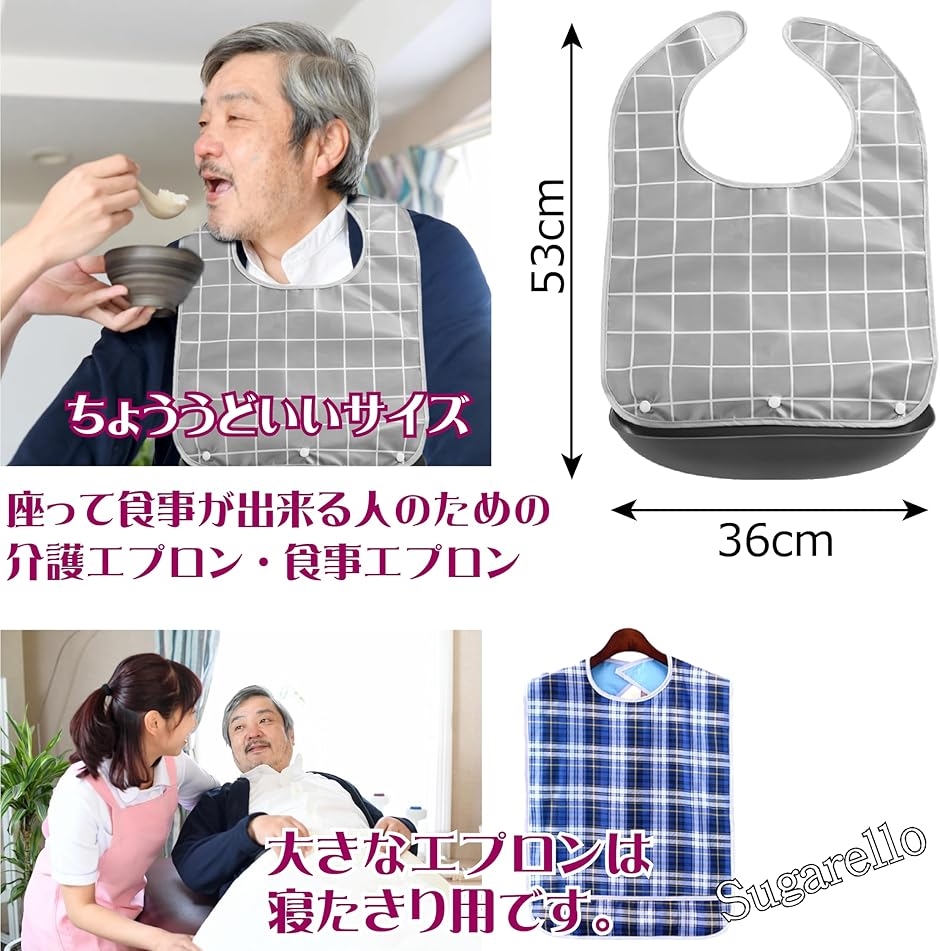 | 商品名 | 介護エプロン 食事用エプロン 防水 受け皿付き 大人用 介護用品 高齢者 エプロン 前掛け 面ファスナー ワンタッチ 中型サイズ 2枚セット |