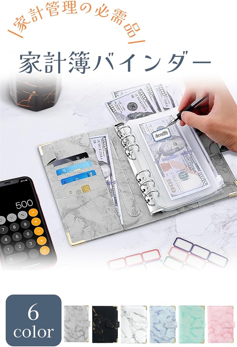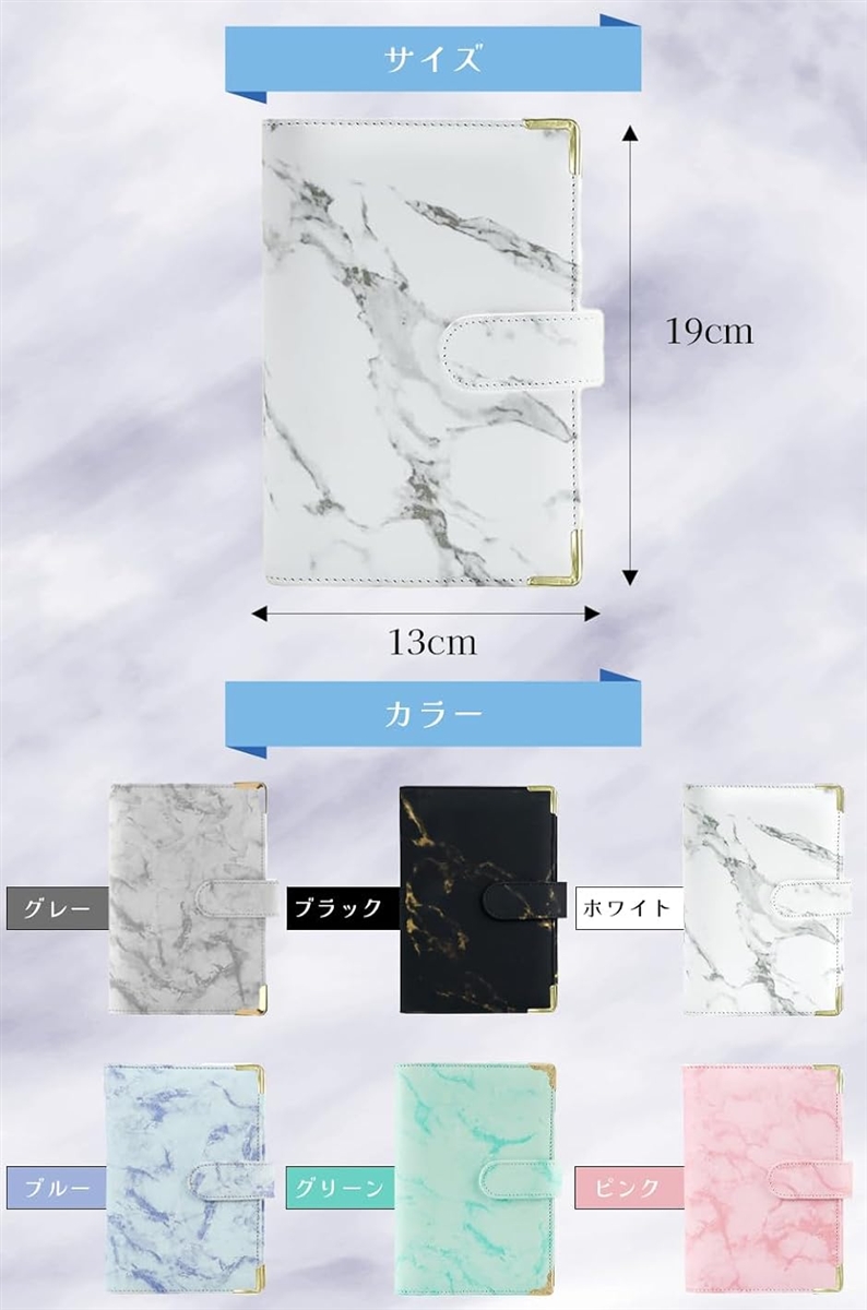 | 商品名 | 家計管理 ポーチ 家計簿 予算バインダー ファイル ポケット12個付き お金管理 予算管理 大理石 A6 グレー |