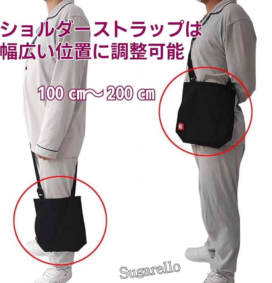 ショルダーストラップは100cm〜200cmの幅で調整可能です。