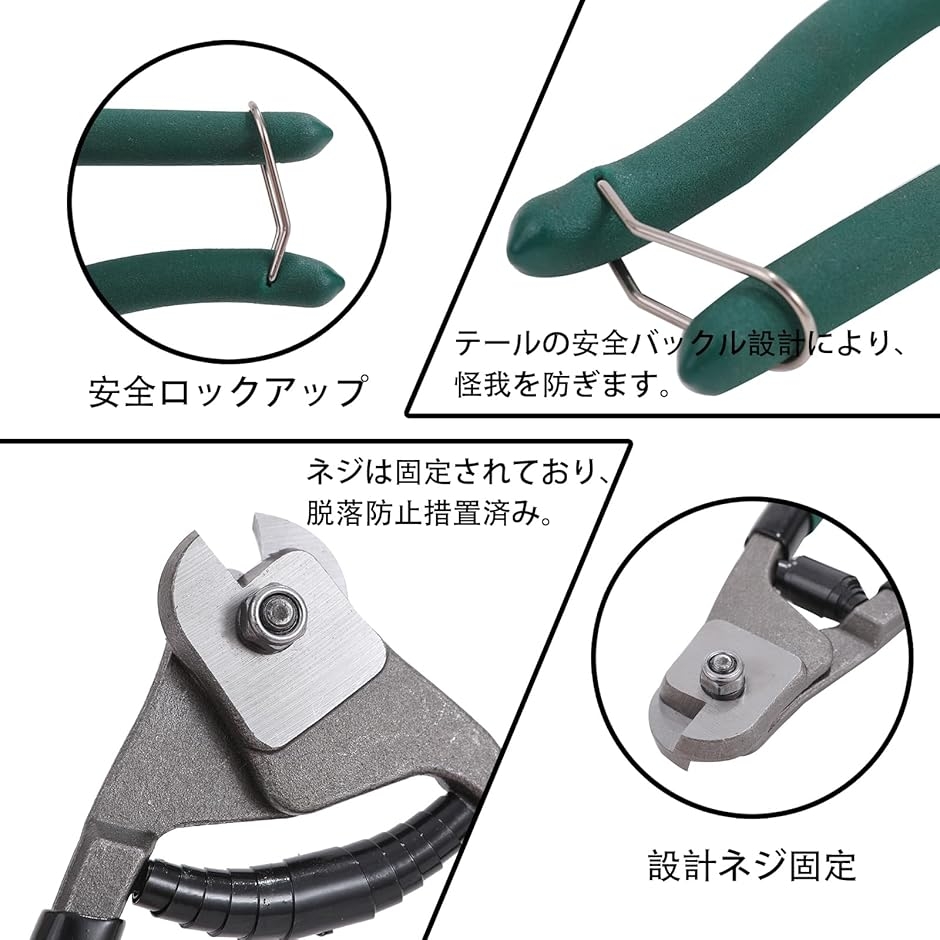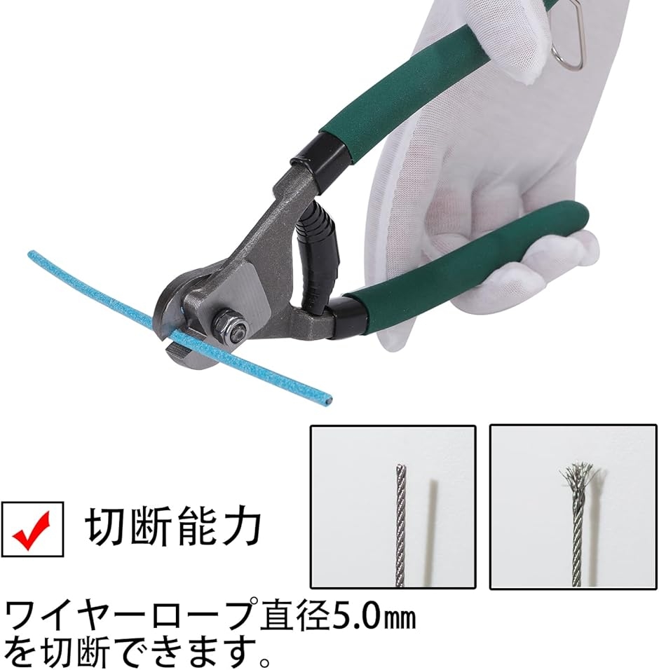 | 商品名 | ワイヤーカッター ステンレス鋼線用ワイヤーロープカッター ワイヤロープ切断直径 5mm 編み込みワイヤー/ステンレスワイヤー/アルミ線/ワイヤータイ/ケーブル線/銅線対応 自転車ブレーキワイヤー用 |