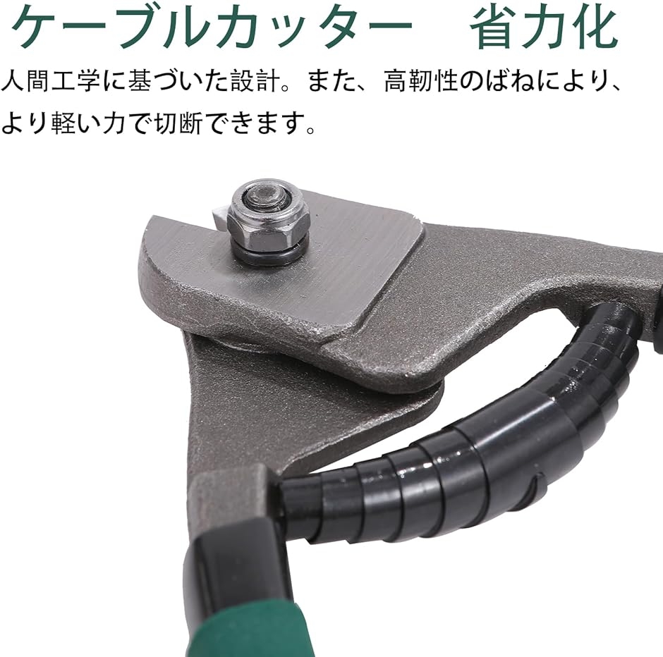 人間工学に基づいた設計、また高靭性のばねにより、より軽い力で切断できます。