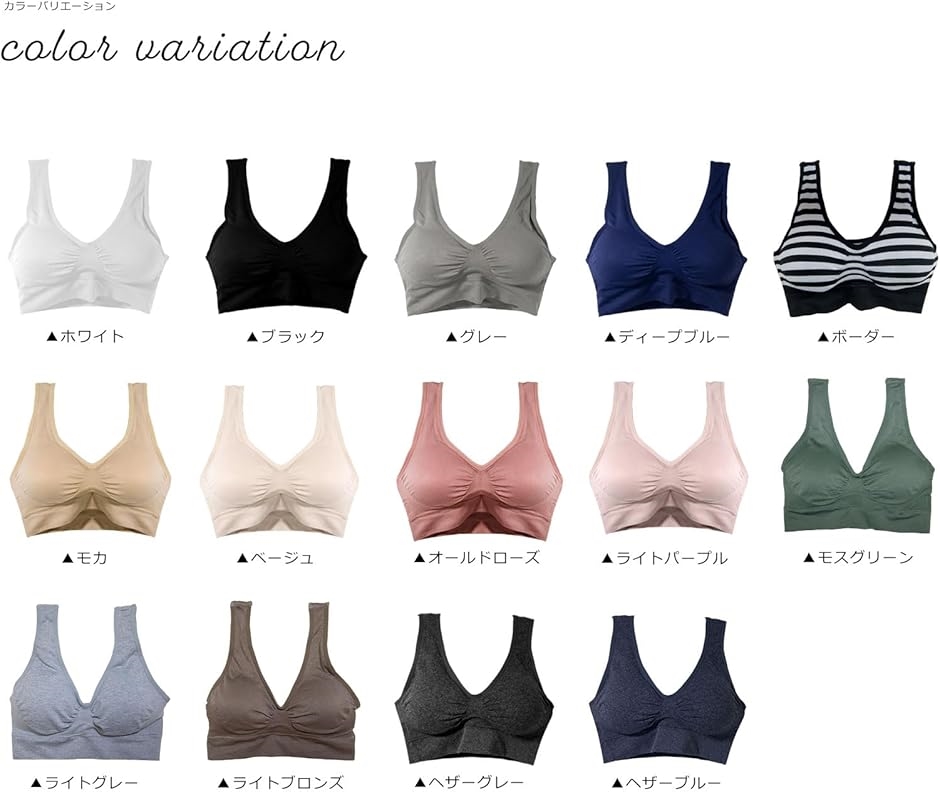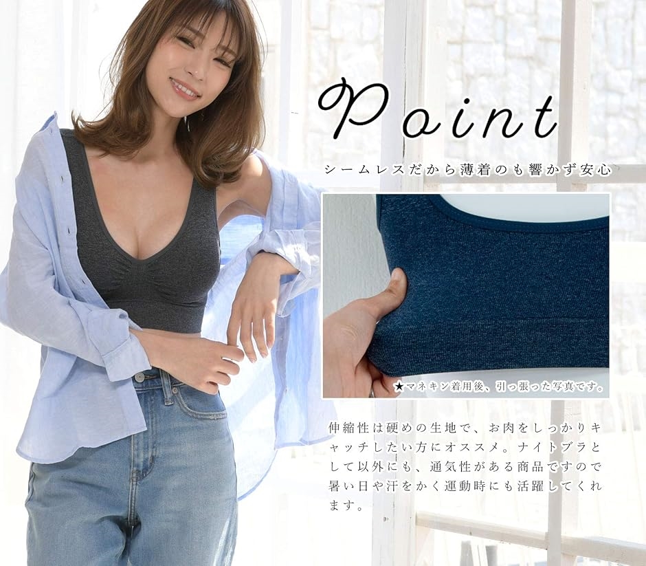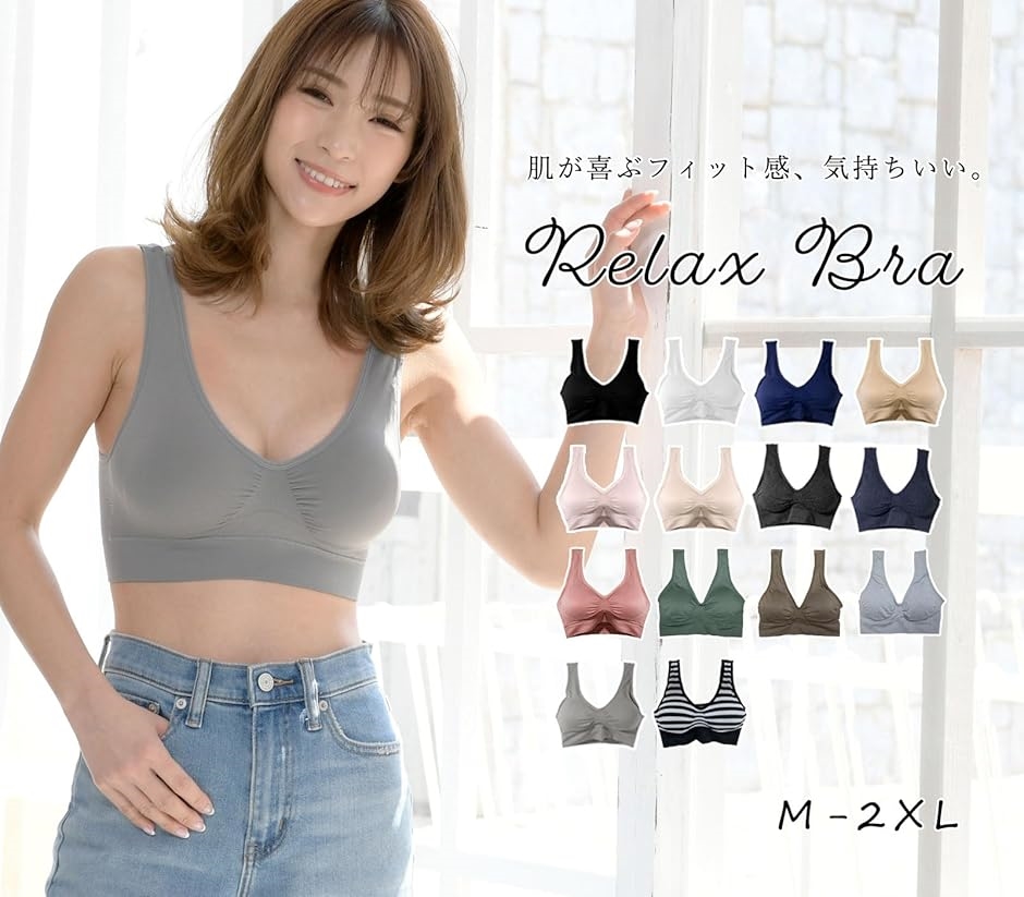 ・ジム、ヨガ、運動時、就寝時、普段にもお使いいただけますノンワイヤー、ノンホックのらくらくブラになります。