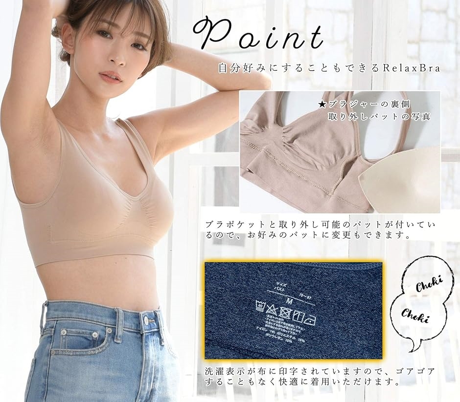 360度伸縮性抜群の素材で伸び縮みしてくれるのでストレスフリーで過ごすことができます。ノンワイヤー、ノンホックなので非常に快適とされ、つけていてとても開放感を味わうことができるのが特徴的です。