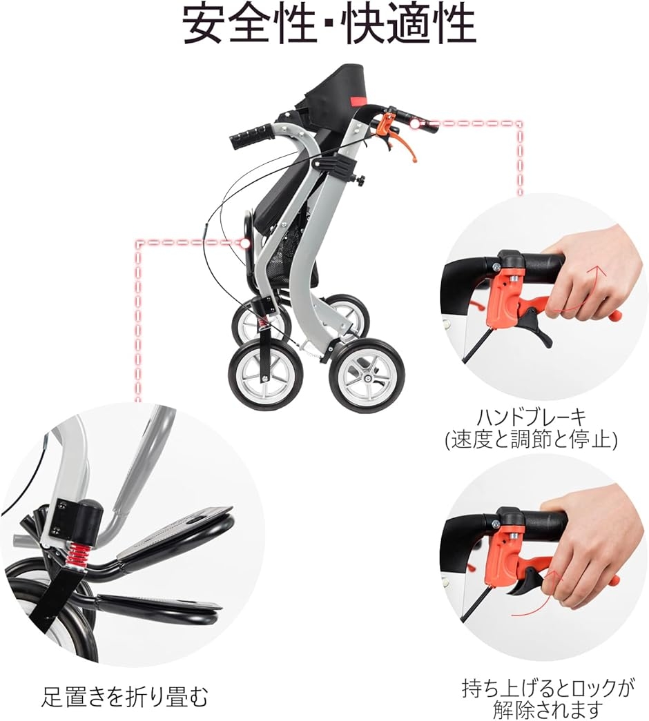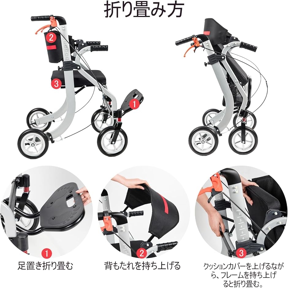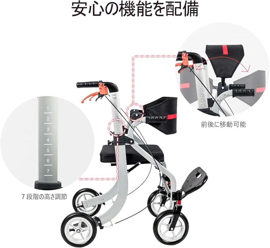 | 商品名 | シルバーカー 歩行車 アルミ製 多機能歩行器 手押し車 座れる 高さ調節可 折畳み 軽量 コンパクト 歩行補助 室内室外兼用 四輪歩行車 |