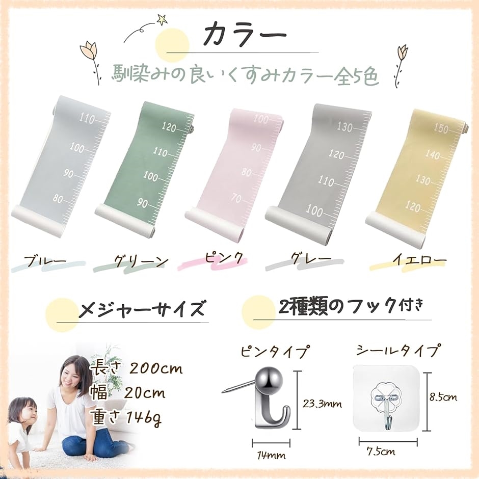 「特徴」お子様の成長の節目節目を記録するのに最適で、直接ペンで身長を書き込んで残すことができます。