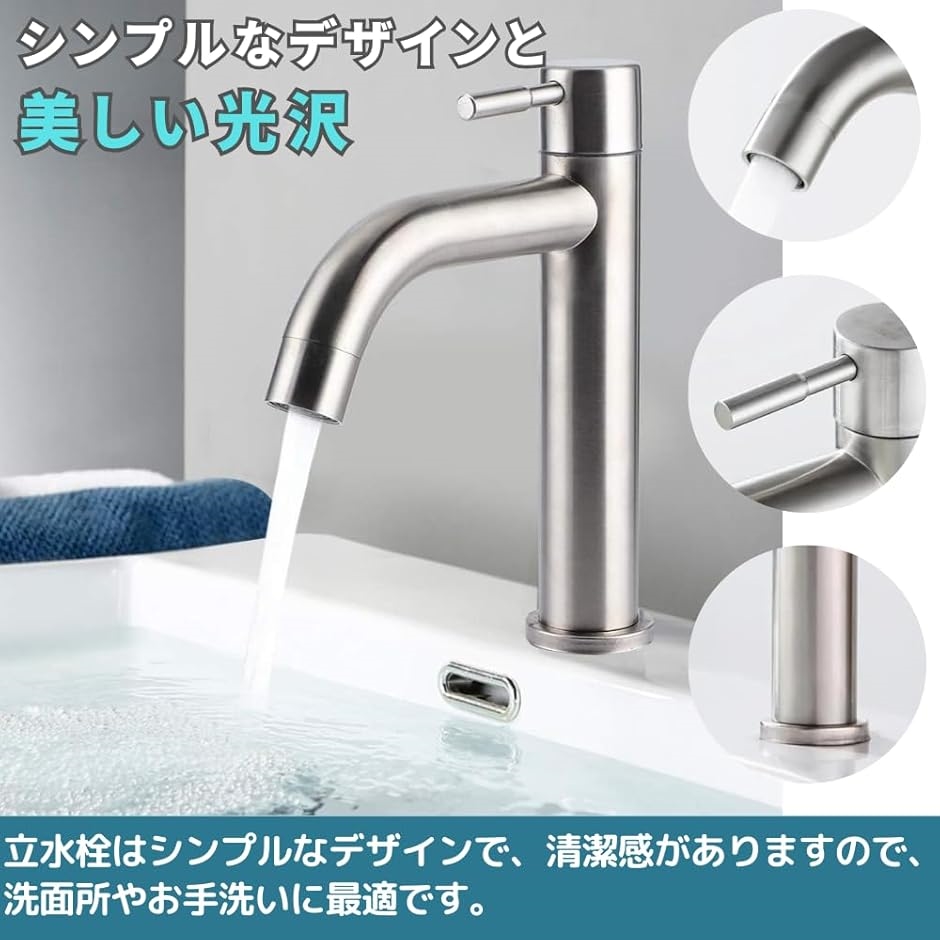 | 商品名 | 洗面用 シングルレバー 単水栓 立水栓 ステンレス製 水道 蛇口 トイレ 洗面台 手洗い 節水 |