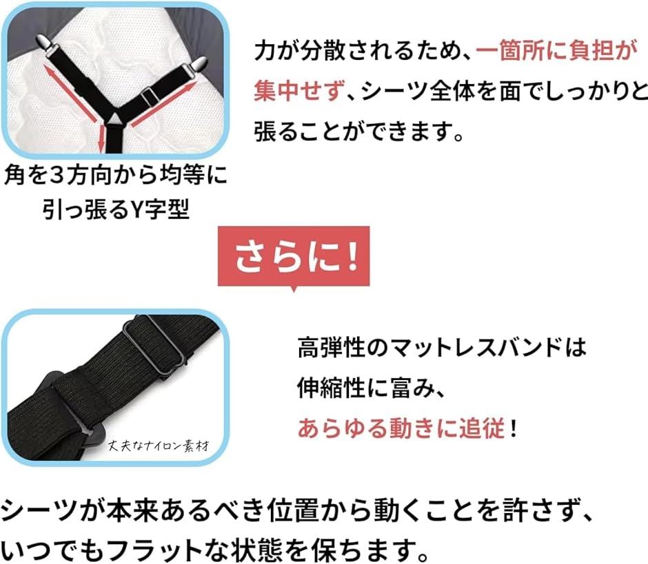寝相が悪いからと諦めていませんか?この「シーツ ズレ防止 バンド」は、そんな毎日の小さなイライラを解消するために生まれました。