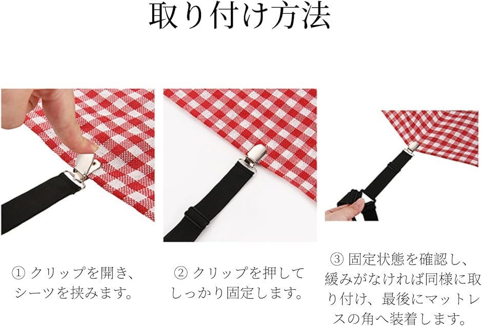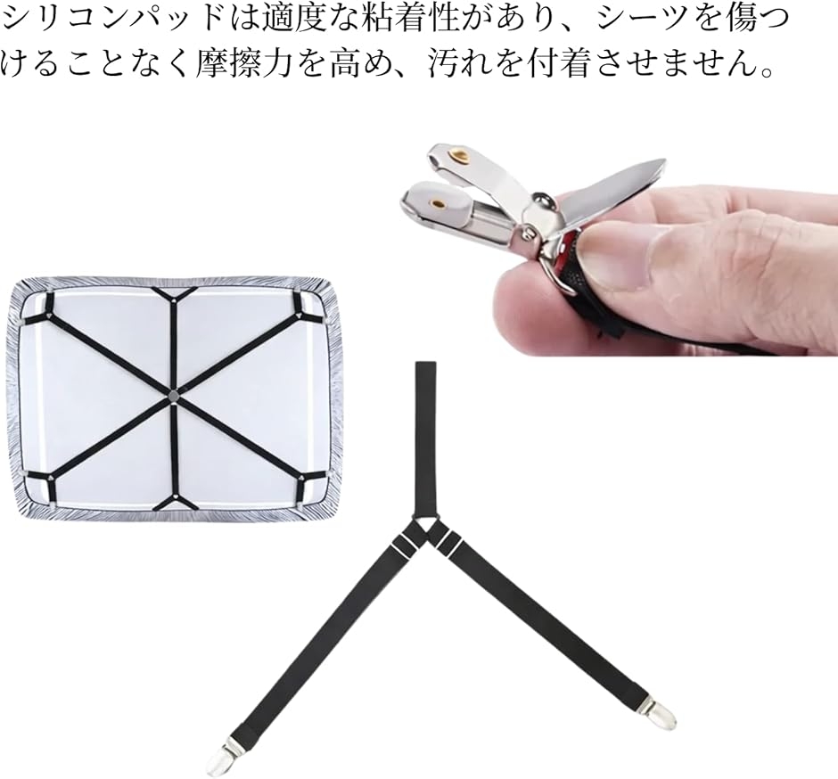 | 商品名 | シーツ ズレ防止 ベッド クリップ Y字構造 布団 固定 サスペンダー マットレス 敷きパッド 対応 |