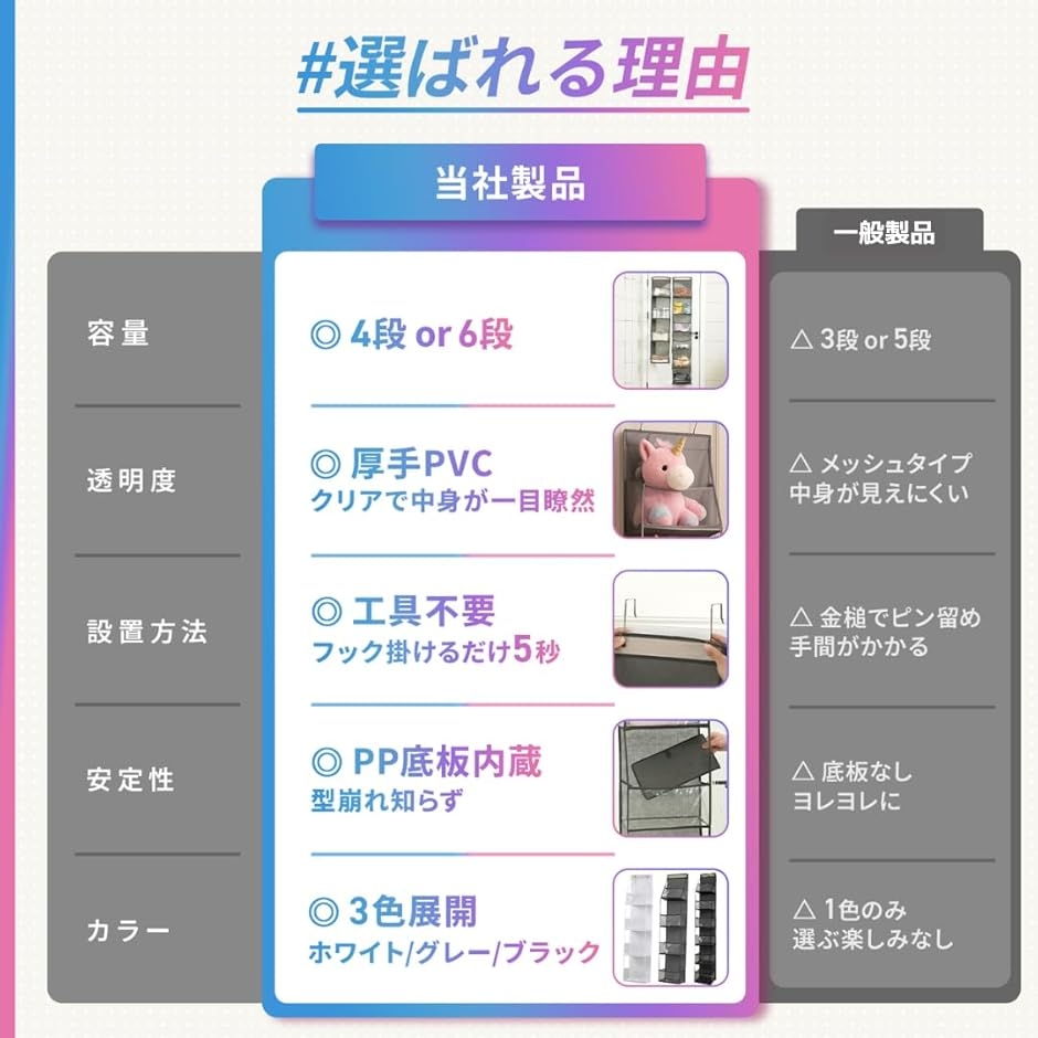 届いたその日からすぐ使えるフックをドアに引っ掛けるだけで設置完了