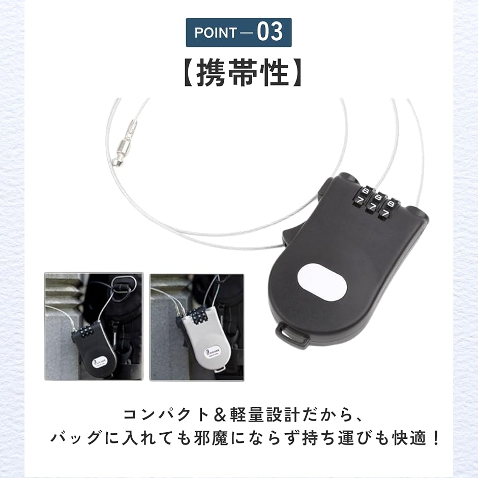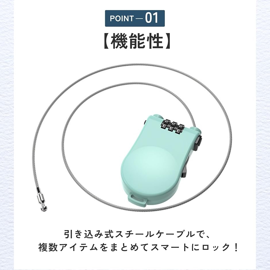 「機能性」引き込み式スチールケーブルで、複数アイテムをまとめてスマートにロック。