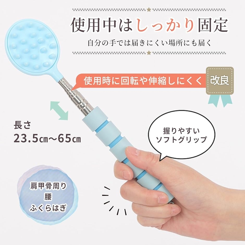 「痒いところにしっかり届く。」23.5cm〜65cmまで、好みの長さに伸ばせます。