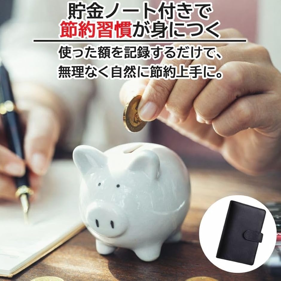 「貯金ノートで無理なく節約」 日々の支出や貯金額を記録できるノート付き。