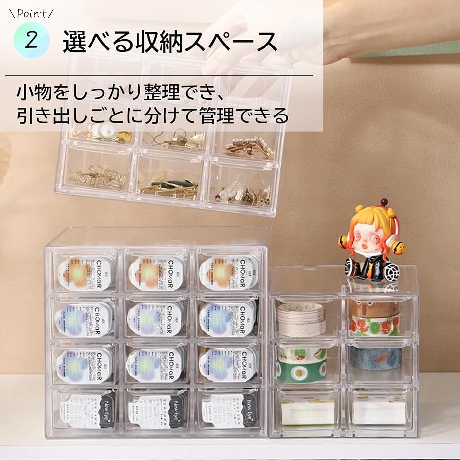 | 商品名 | コンタクト収納ケース 透明 引き出し式 カラコンケース 大容量 仕切り 防水 ジュエリー 化粧品 小物整理 卓上収納 |