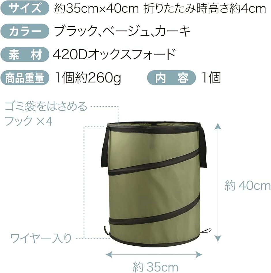 「サイズ」 約35cmx40cm 折りたたみ時高さ約4cm 「カラー」 カーキ 「素材」 420Dオックスフォード 「商品重量」 1個約260g 「内容」 1個