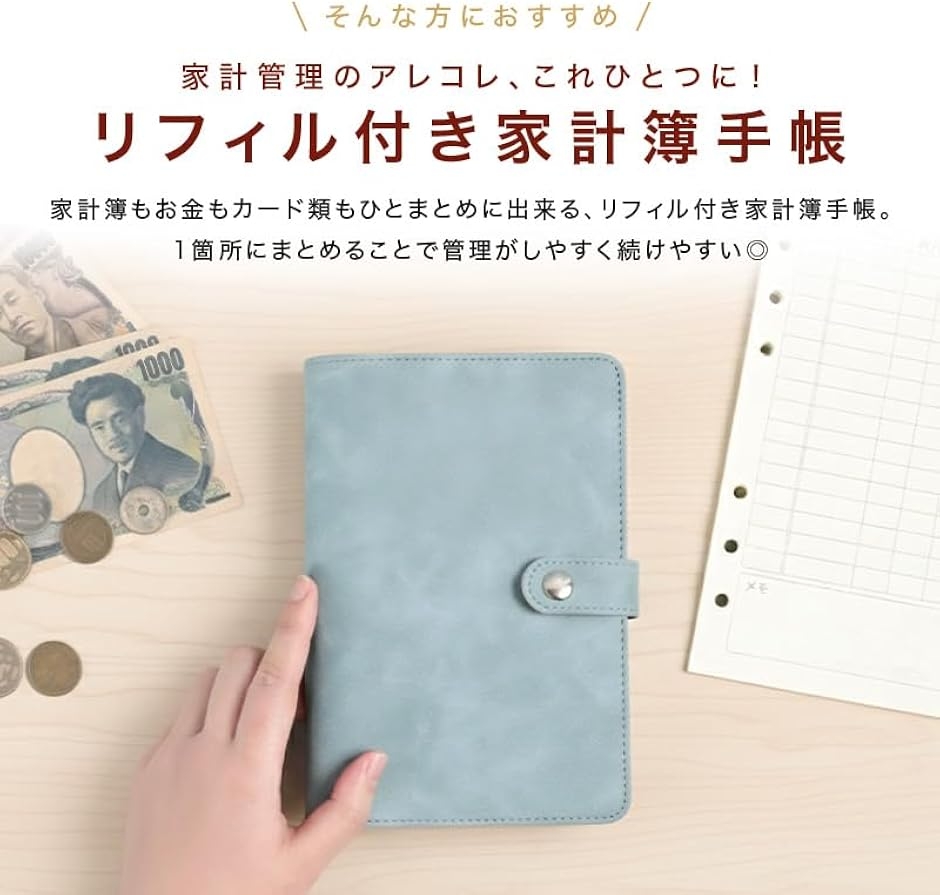 「家計管理をこれ1冊に集約」 お金、カード、レシート、家計簿をひとまとめに管理できる多機能バインダー手帳です。