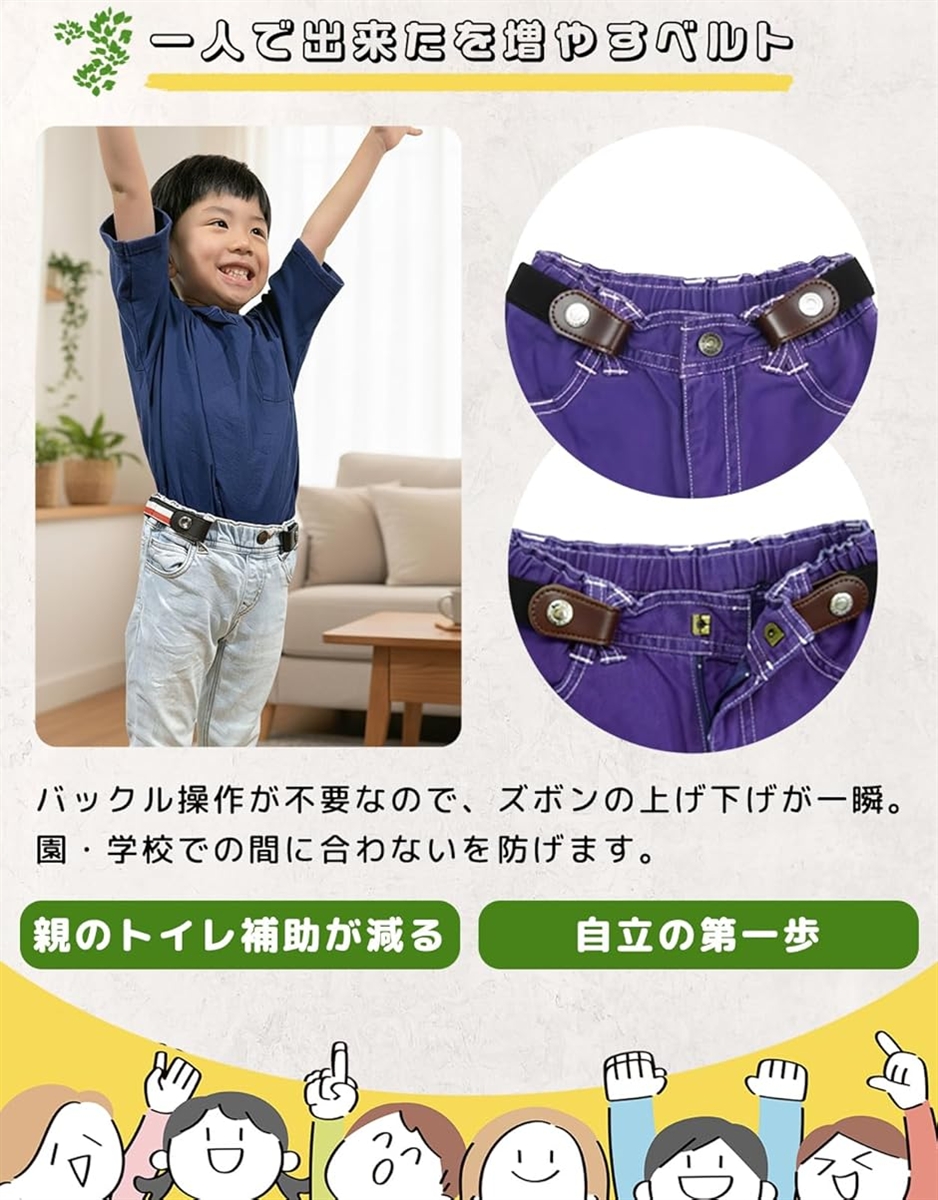 | 商品名 | キッズベルト 子供 ゴム ベルト トイレ簡単・着脱ラク バックルなし 無段階調整 ボタン式 子供用ベルト 入園 入学 幼稚園 小学生 |