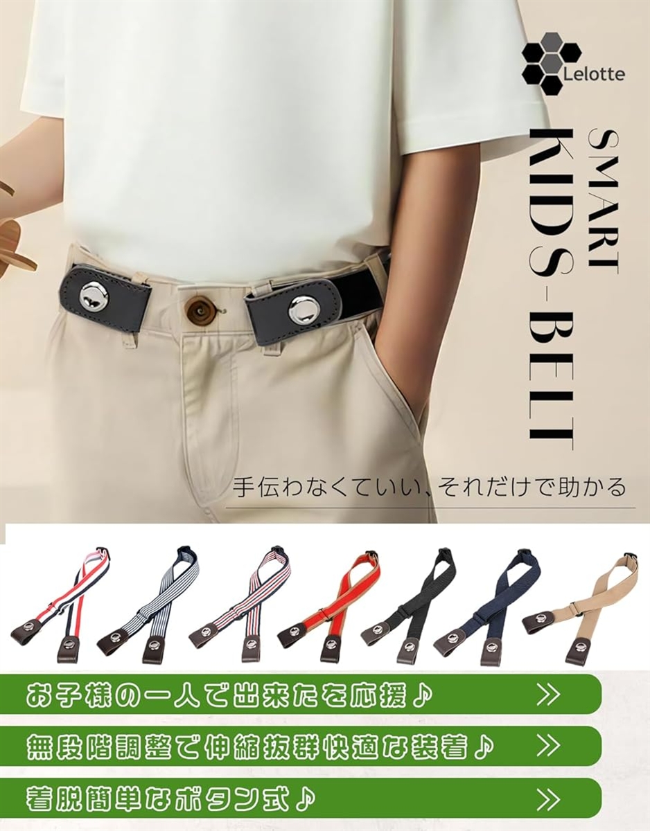 | 商品名 | キッズベルト 子供 ゴム ベルト トイレ簡単・着脱ラク バックルなし 無段階調整 ボタン式 子供用ベルト 入園 入学 幼稚園 小学生 |
