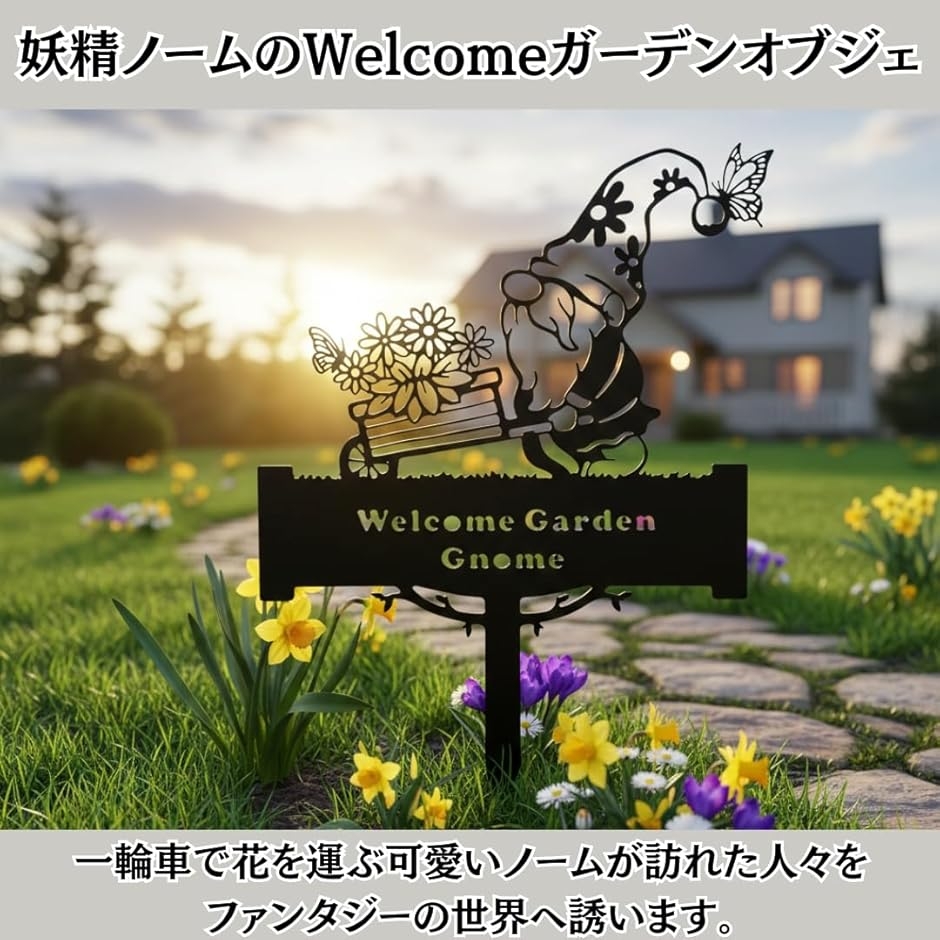 | 商品名 | ガーデンオブジェ ノーム 妖精 プレート 地面に刺す ガーデニング 雑貨 庭 飾り アイアン 園芸 屋外 置物 アンティーク 北欧 おしゃれ Welcome |
