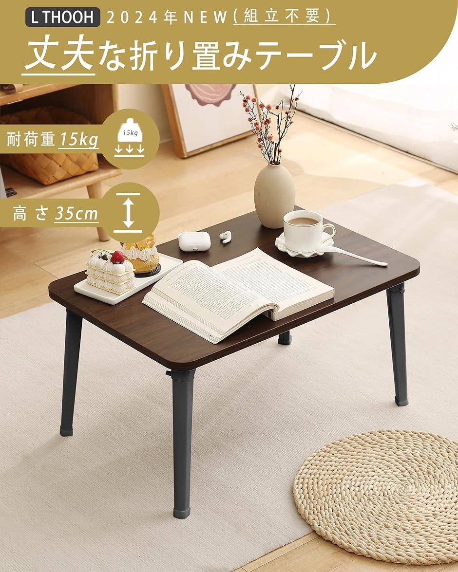折り畳み式(収納厚4.5cm)でベッド下収納可能なテーブル 折りたたみ 小さめ。