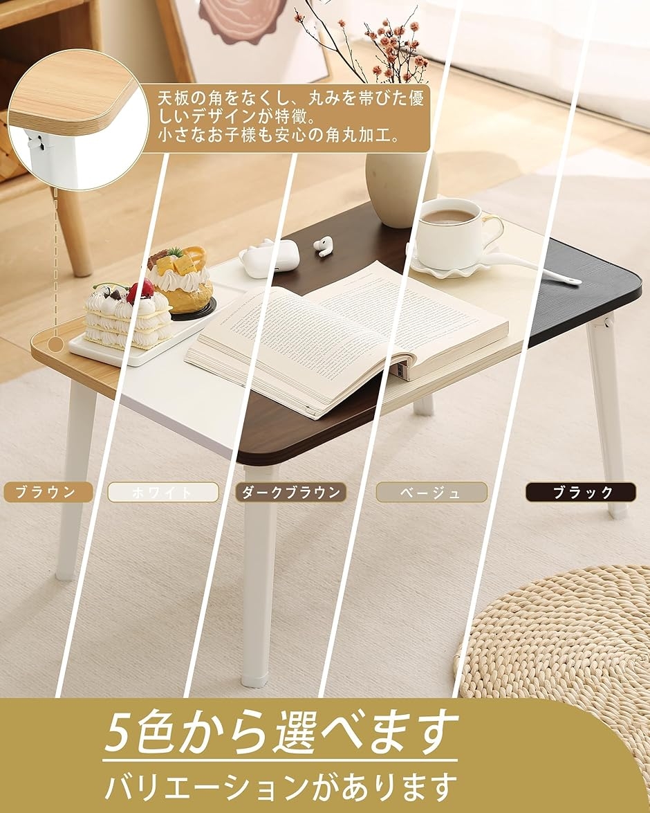 「多様なシーンで大活躍」 折りたたみ机として勉強・在宅ワークに、座卓として食事・お茶に、tableとしてベッドサイドでの読書・ノートパソコン作業・ゲームに最適。
