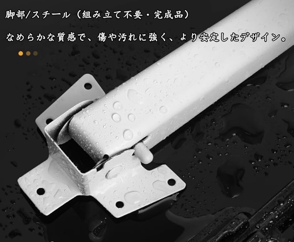 天板は高品質HDF木製(メラミン樹脂加工)、脚部は頑丈なスチール製で、組み立て不要の完成品です。