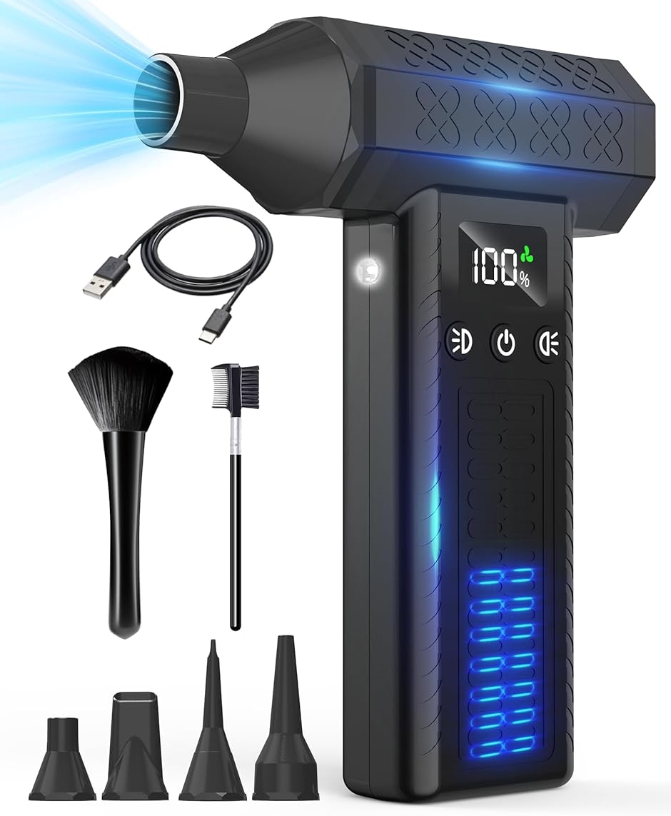 「100%真鍮超強力ブラシレスモーター&8000mAh大容量バッテリー&急速充電可能」アップグレードされた超強力モーターを採用、コンピュータやその他のデバイスの隅々からほこりを吹き飛ばすことができます。