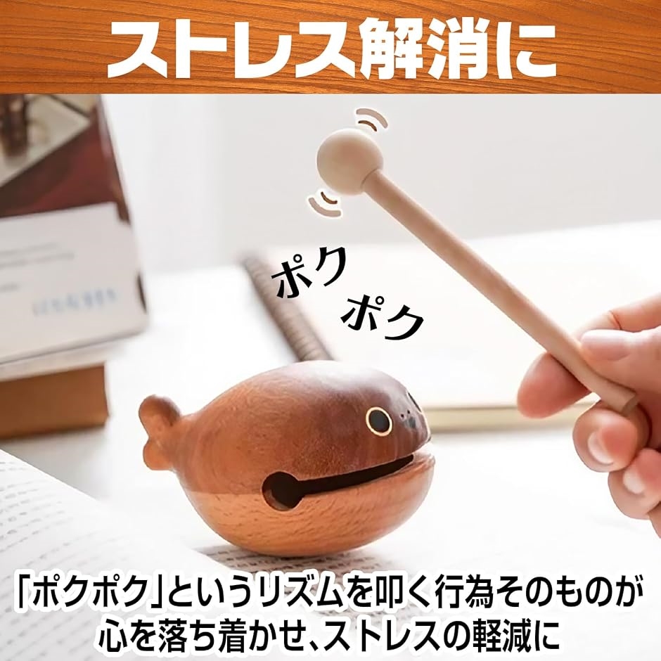 叩くたびに響く木魚の音が心を落ち着かせ、忙しい毎日の中でひと息つけるリラックスタイムを提供します。