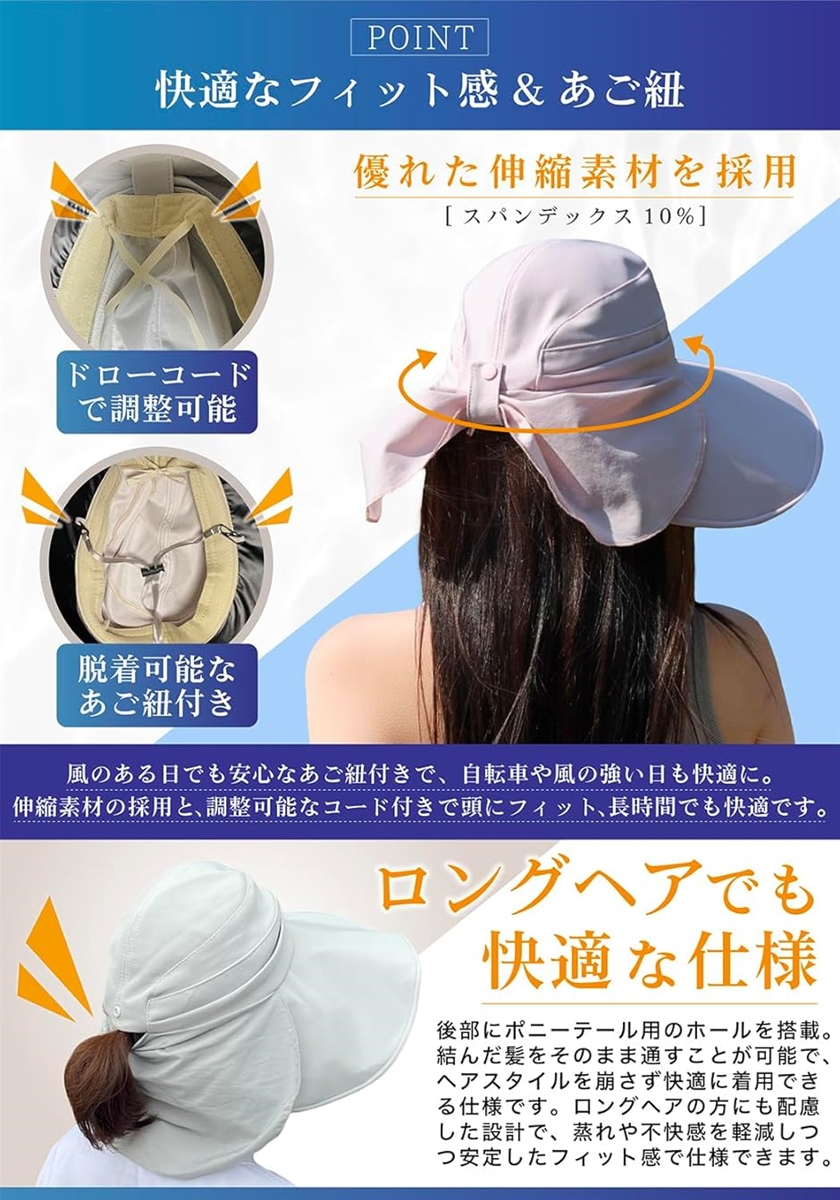 髪型を崩さず、紫外線からも守る、美しさも機能性も妥協しない設計です。