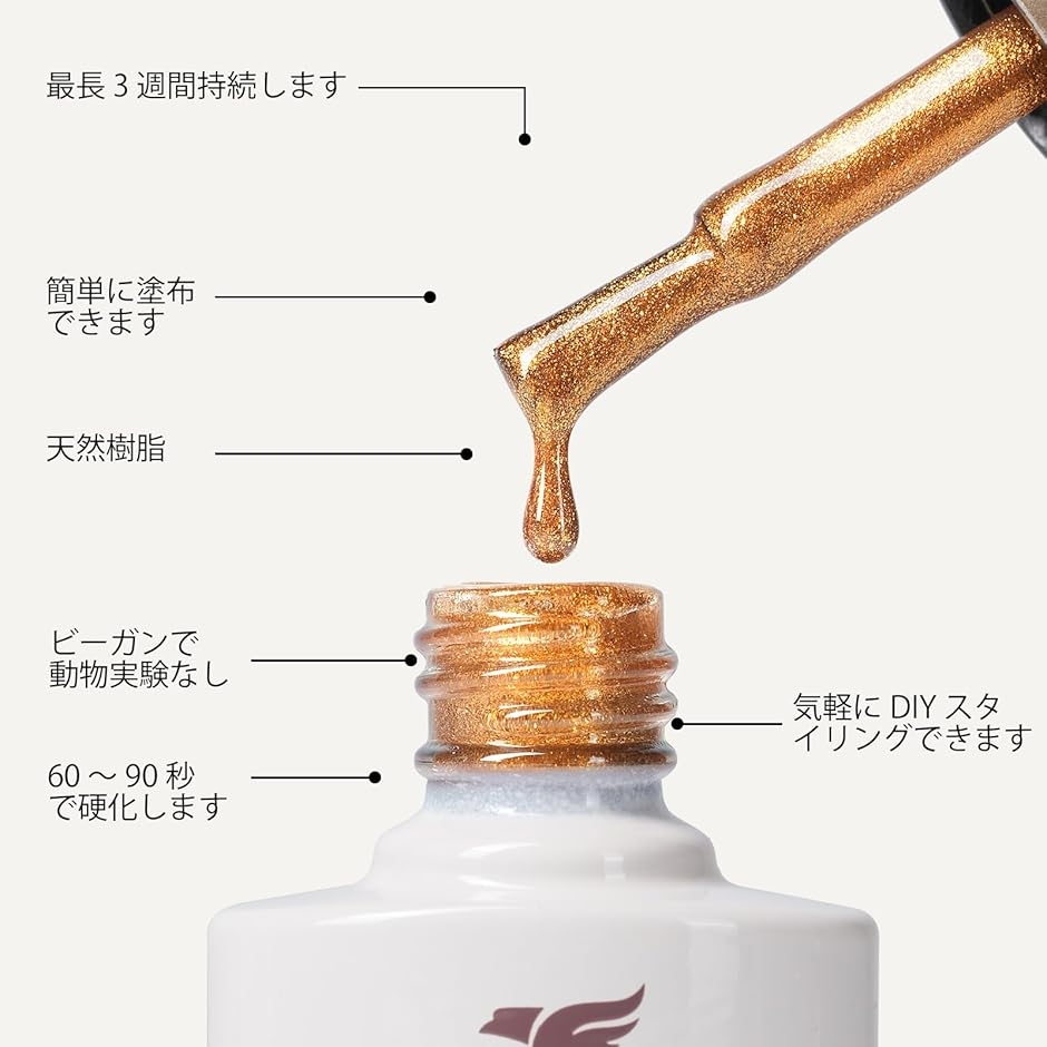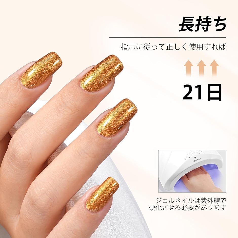 内容量: ゴールドジェル(8ml/本)、TOMICCA UV LED ジェルネイルポリッシュ、ジェルネイルポリッシュセットは、UV/LED ネイルドライヤーで硬化する必要があります。