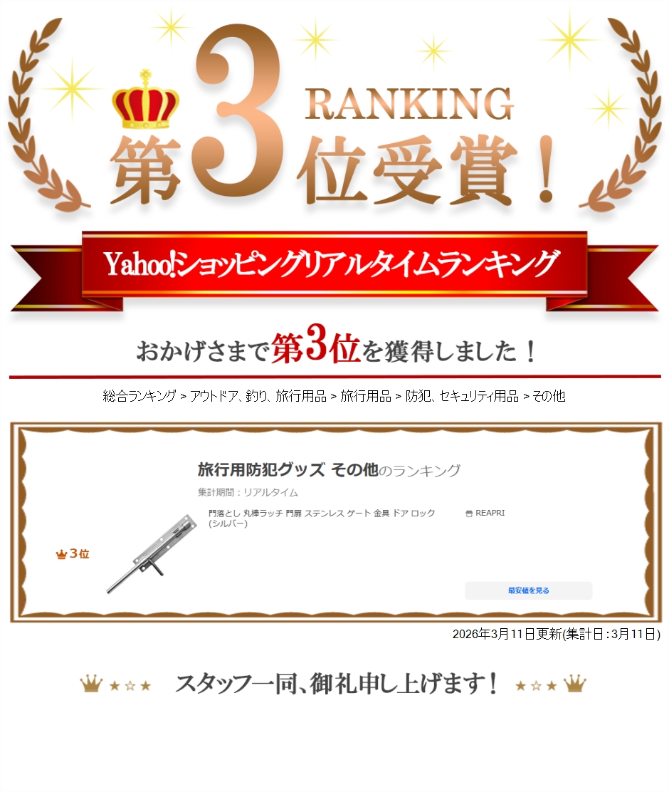 | 商品名 | 門落とし 丸棒ラッチ 門扉 ステンレス ゲート 金具 ドア ロック |