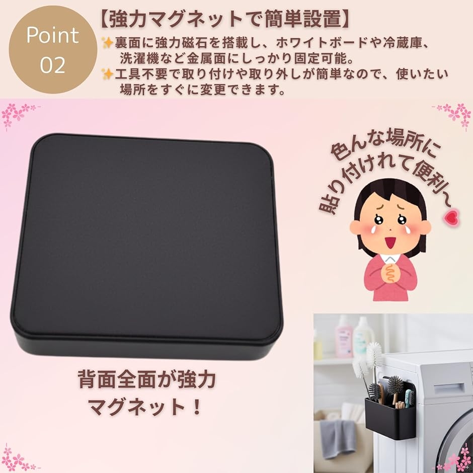 「強力マグネットで簡単設置」裏面に強力磁石を搭載し、ホワイトボードや冷蔵庫、洗濯機など金属面にしっかり固定可能。