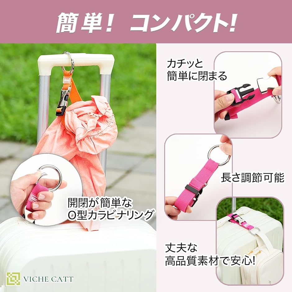 また、出張時のキャリーケースや、ベビーカーに買い物袋を固定したりと、日常生活にも役立つマルチユースなアイテムです。